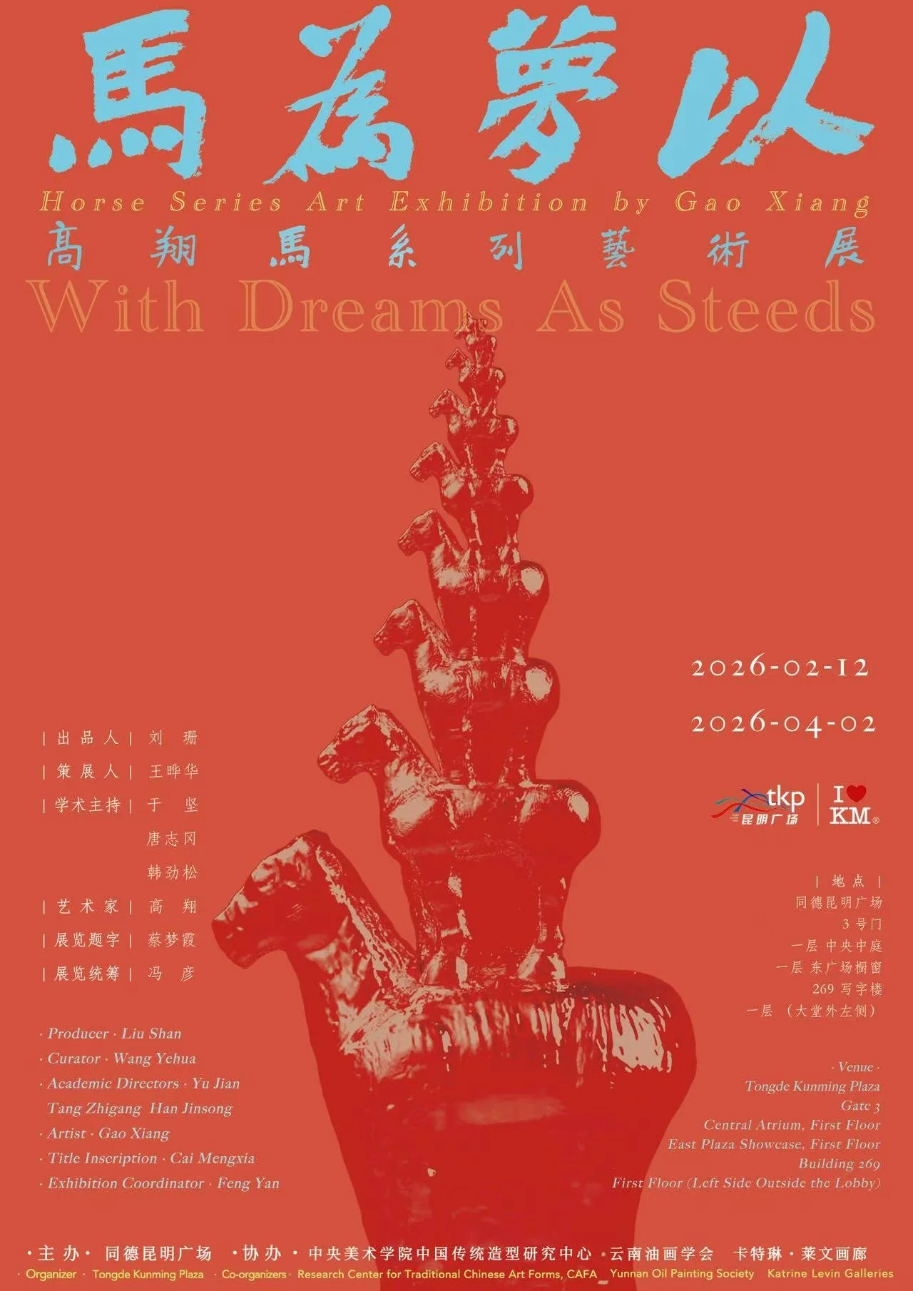 2026, KUNMING. We are proud to co-organise with CAFA (Central Academy of Fine Arts in China), the Yunnan Oil Painting Society, and Tongde Kunming Plaza the current exhibition of Gao Xiang’s paintings and sculpture in Kunming, “With Dreams as Steeds”, running through April 2026.